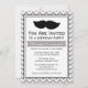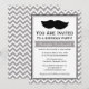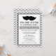 Une invitation à la fête d'anniversaire aux motifs de moustache et de chevron en gris, noir et blanc pour les hipsters qui aiment les papilles !