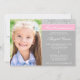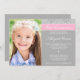 Un damas élégant et une première invitation à la communion. Montré en gris et rose. Chic et classe — Personnalisez facilement votre événement. Pour redimensionner et positionner votre photo, cliquez sur le bouton "CUSTOMISER IT". Vous pourrez également modifier le style, la couleur, la taille et la position de la police.