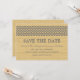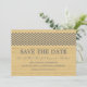 Chevron rustique moderne et tendance Enregistrer la date Annonce avec un arrière - plan imprimé de texture art numérique et un motif zig zag de rayures de chevrons gris. Ce design est parfait pour annoncer un mariage rustique mais élégant. Facile à customiser, il suffit d'ajouter les détails de votre mariage. Cliquez sur "Customiser" pour trouver d'autres options de personnalisation.