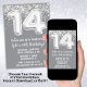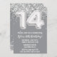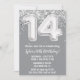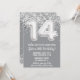 Gray and silver 14e anniversaire invitation 14 anniversaire de fête invitation pour un garçon ou une fille avec l'écriture de script moderne et des ballons de papier amusant.
