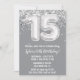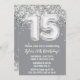 Gray and silver 15e anniversaire invitation 15 anniversaire de fête invitation pour un garçon ou une fille avec l'écriture de script moderne et des ballons de papier amusant.