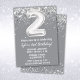 Gray and silver 2e anniversaire invitation à la fête age 2 anniversaire invitation à la fête avec parties scintillant et écriture de script moderne et ballons de papier amusant.