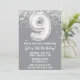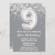 Gray and silver 9th Birthday party invitation age 9 anniversaire invitation avec noir blanc argent avec écriture de script moderne et ballon en papier amusant.