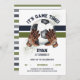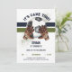 Cette invitation personnalisable à la fête d'anniversaire de football est parfaite pour le grand jour de votre petit athlète! Conçu avec un ballon de football gris et blanc, des gants de football brun vintage et des rayures bleu et vert rétro, cet invitation sportif ajoute une touche amusante à votre célébration. Personnalisez le texte avec les détails de la fête d’anniversaire de votre enfant pour un design unique. Idéal pour une fête d'anniversaire sur le thème du football, cette invitation s'associe parfaitement à la décoration de la fête de football et aux activités de la journée de jeu. Que vous planifiez une fête en salle ou un match de football jardin, cet invitation de fête d'anniversaire sportif saura impressionner les invités et exciter tout le monde. Idéal pour les garçons et les filles qui aiment le football - lancez la célébration dans le style!