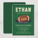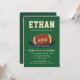 This green football field birthday invite brings playful sports charm to a boys first birthday party and sets the tone for a fun get ready to play ball celebration. Perfect for a baby first birthday party announcement, it highlights your little one’s 1st year milestone birthday with a bold field layout. Personalize the name, time, and message using this custom gridiron football bday template. A great choice for a sports birthday party invitation. Personalize yours today.