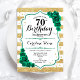 Invitation à la fête du 70e anniversaire. Elégant design floral vert émeraude avec rose. Fonctionne de faux parties scintillant or et bandes blanches et police de script. Idéal pour une célébration anniversaire féminine élégante. Peut être customisé pour n'importe quel âge ! Invitations Zazzle imprimées ou téléchargement instantané modèle imprimable numérique.