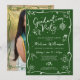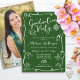 Be proud, rejoice and showcase this milestone of your favorite grad! Send out this quirky, whimsical, simple, modern, personalized photo invitation for an event to remember. Fun, white handwritten script typography and hand drawn graduation icon sketch doodles overlay a hunter green background. On the back, a hand drawn hearts border in hunter green overlays their custom photo. Personalize the custom text with your grad’s name, school, class year and party info on the front. Add your own photo on the back. Matching save the dates, thank you cards, banners, welcome signs, posters and other graduation goodies are also available in this trendy and whimsical collection. Guaranteed to add stylish fun to their special occasion!