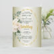 Invitation Green Leaves Pink Floral Golden Geometric Wedding
