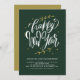 Invitation Green Modern Calligraphy and Wreath New Year Party