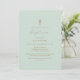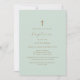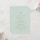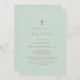 Invitation Green Modern Script Boho Gold Cross Baptême