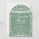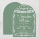 Set the scene for a serene and stylish celebration with this sophisticated sage green Mexican-inspired wedding invitation! Featuring exquisite papel picado banners, delicate white folk art floral lacework, and a calming muted green background framed within an elegant arch, this invitation beautifully marries cultural tradition with contemporary botanical elegance. The cool, muted sage paired with crisp white detailing creates a fresh, nature-inspired aesthetic perfect for a garden or outdoor wedding.