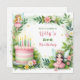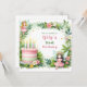 Plongeons dans le monde enchanteur de ce fantastique design d’anniversaire de fée. L'image comporte deux personnages féeriques. Autour des fées et d'un gâteau d'anniversaire joliment décoré, un jardin magique fleurit avec des fleurs aux teintes douces et bien illustrées. Les couleurs prédominantes sont les verts apaisants, créant une ambiance de rêve. Idéal pour fêter l’anniversaire d’un petit enfant, l’image capte l’innocence et la magie de l’enfance.