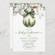 EDITABLE Green Plaid Bow Floral Winter Ornament Baby Shower Invitation