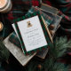 Green plaid patterned Christmas card with a cute teddy bear illustration.