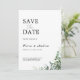 Enregistrez la Date dans le style avec nos élégantes cartes de faire-part à votre événement spécial. Le design présente de magnifiques aquarelles de verdure qui apportent une touche de charme de la nature à votre prochaine célébration. Parfait pour les mariages ou les fêtes joyeuses, ce design charmant donne le ton pour une occasion inoubliable. Personnalisez votre faire-part pour en faire le vôtre et laissez vos proches marquer avec impatience leur calendrier pour votre grand jour.
