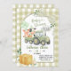 Invitation Green Tractor Gingham Coquette Farm Baby Shower
