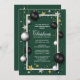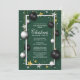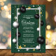 Célébrez la saison festive et invitation vos collègues de travail et invités spéciaux cette année avec cette invitation de fête de Noël moderne qui comprend une bordure blanche ornée de baubins d'arbre de Noël noir et blanc sur un arrière - plan vert.