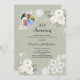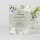 For an elegant and romantic 25th wedding anniversary. A sage green background decorated with white florals, roses and white lace. Personalize and add your photo, names and details.