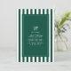 Tennis Bachelorette Weekend Itinerary Invitation | Green & White Striped Last Swing Before the Ring. Perfect for a bride who loves tennis, this modern Last Swing Before the Ring bachelorette invitation features a chic forest-green background, bold white stripes, and minimalist tennis-themed line art.