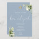 Invitation Greenery Floral Monogram Blue Bar Mitzvah