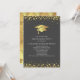 This modern design features a graduation hat and confetti in gold on a background of grey with white text.