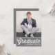 Invités Invitations à votre événement avec cette invitation personnalisable de graduation photo. Il dispose d'un script rétro audacieux et d'une typographie classique. Personnalisez en ajoutant vos détails. Cette invitation de graduation grise est disponible dans d'autres cartons et couleurs.