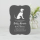 Inclure le grand frère ou la soeur bébé à fourrure dans la célébration avec cet adorable design de baby shower de chien Greyhound! Parfait pour un amoureux du chiot avec un bébé en route. Le Greyhound se trouve à côté d'un adorable chariot vintage. L'arrière - plan gris damier est parfait pour une douche neutre ou co-ed pour les hommes !