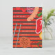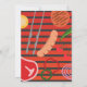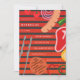 Ceci est une invitation à une fête de barbecue amusante et unique, parfaite pour une fête d'anniversaire, une célébration du 14 juillet, la fête du Travail et un barbecue dans le jardin. L'invitation présente un barbecue avec un certain nombre d'objets que l'on trouve couramment dans les barbecues tels que des saucisses, des tomates cerises, un steak haché, un steak, des rondelles d'oignon, du maïs, des poivrons et une pince.