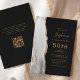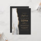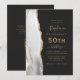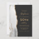 Le bord gauche de cette élégante invitation moderne pour une fête d'anniversaire de 50 ans présente une bordure d'agate aquarelle grise et blanche rehaussée de fausse dorure dorée. Le texte personnalisable combine des écritures dorées manuscrites, des polices copperplate et italiques sur un fond noir ardoise. Ajoutez les instructions de RSVP au verso de la carte, ainsi qu'un code QR que les invités peuvent scanner pour répondre en ligne.