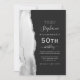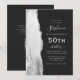 Le bord gauche de cette élégante invitation moderne pour une fête d'anniversaire de 50 ans présente une bordure d'agate aquarelle grise et blanche rehaussée de faux strass argentés. Le texte personnalisable combine des écritures argentées grises, des polices copperplate et italiques sur un fond noir ardoise. Ajoutez les instructions de RSVP au dos de la carte, ainsi qu'un code QR que les invités peuvent scanner pour répondre en ligne.