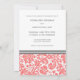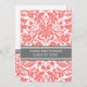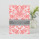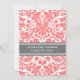 Carte faite sur commande d'invitation de fête de remise des diplômes dans le motif floral vintage classique de rose de pêche lumineuse élégante et sophistiquée, gris et blanc orange de damassé. Customisez cette carte de faire-part de diplômé en ajoutant l'année de votre obtention du diplôme et de vos petits groupes de fête de remise des diplômes.