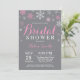 Invitation rustique de Fête de la mariée d'hiver. Flocon de neige rose et blanc. Invitation de Fête de la mariée de vacances de Noël. Arrière - plan gris. Pour davantage de personnalisation, cliquez sur svp la "personnaliser il" bouton et utilisez notre outil de conception pour modifier ce modèle.