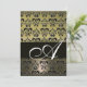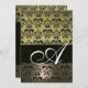 Invitation GRIS NOIR DAMAS MONOGRAMME ,blanc brillant