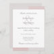 Un design géométrique unique et chic, avec une bordure en rayures subtiles rose et gris sur le haut et le bas et l'esperluette joignant les noms du couple en union. La carte RSVP correspondante est disponible à l'adresse suivante : https://www.zazzle.com/blush_pink_gray_white_stripes_elegant_wedding_rsvp_invitation-256881712110668383 La carte Detail Encape correspondante est disponible à l'adresse suivante : https://www.zazzle.com/blush_pink_gray_white_stripes_wedding_hotel_detail_enclosure_card-256102177458056874