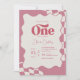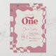 Invitation Groovy One Retro Pink Checkered 1st Birthday Invit