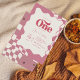 Featuring a stylish "Groovy One" theme, this design uses a playful pink and cream color palette, a distorted checkered pattern, and a fun wavy scalloped frame. The 70s-inspired typography makes a bold statement while remaining sweet and celebratory for a little girl’s first birthday.