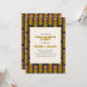 This engagement party invitation features a bold retro border with geometric leaf shapes and soft floral accents in mustard, coral, and deep navy. The warm midcentury-inspired pattern creates a lively frame around the celebration details, blending playful shapes with a stylish, modern mood. Its mix of graphic motifs and clean text makes the design feel unique for evening events, club venues, or cozy at-home gatherings. The rich palette brings a cheerful yet sophisticated tone to any engagement celebration.