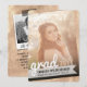Carte d'invitation / d'annonce de fête de remise de diplômes moderne avec typographie et gribouillis en croquis blanc incliné sur une texture de faux feuillet métallisé or rose / bronze.