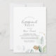 Cette invitation généreuse à la fête de fiançailles de verdure et de feuilles d'or est parfaite pour un événement fiançailles moderne. L'élégant design botanique présente des eucalyptus aquarellés clairs et aquarellés, agrémentés de feuilles de parties scintillant en or blanc.