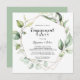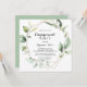 Cette invitation de fiançailles de verdure dorée géométrique et élégante est parfaite pour une simple célébration fiançailles. Le design est orné de feuilles d'eucalyptus verts peints à la main et ornés d'un cadre géométrique doré.
