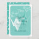 Cette invitation délicate et douce en forme de grue en papier est parfaite pour un mariage, une réception de mariage, une baby shower ou un anniversaire, réalisée dans des teintes claires d'aqua. Un design illustré exclusif de Shy Socialites.