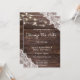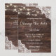 Les choses changent. Envoyez à vos invités une belle invitation de changement de date de mariage en raison de cette invitation avec guirlande de bois et de dentelle bleue avec des lumières à cordes. Idéal pour les mariages champêtres et de jardin.