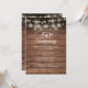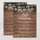 Avec des confettis dorés délicats et des guirlandes lumineuses sur un fond de panneaux de bois rustique. Personnalisez avec vos informations d'anniversaire doré de cinquante ans en typographie moderne. Conçu par Thisisnotme©
