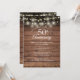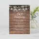 Avec des confettis dorés délicats et des guirlandes lumineuses sur un fond de panneaux de bois rustiques. Personnalisez avec vos informations d'anniversaire doré de cinquante ans dans une typographie moderne. Conçu par Thisisnotme©