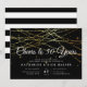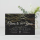 Nos élégantes invitations de fête d'anniversaire de mariage en noir chic, or et blanc présentent un riche fond noir avec des guirlandes de lumières en faux feuillet or sur le dessus, et "À votre XXème anniversaire" en typographie calligraphique chic. Personnalisez pour tout anniversaire marquant; exemple montré pour un 50ème anniversaire de mariage. Personnalisez avec les détails de votre célébration d'anniversaire de mariage ci-dessous en lettrage blanc.