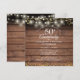 Comprend de jolies guirlandes lumineuses et des confettis de cœurs dorés délicats sur un fond de panneaux de bois rustique. Personnalisez avec vos informations spéciales d'anniversaire doré de cinquante ans en lettrage chic. Conçu par Thisisnotme©