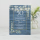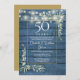 Avec de jolies guirlandes lumineuses et une délicate verdure de jardin champêtre à l'aquarelle sur un fond en bois rustique bleu, cette invitation d'anniversaire élégante peut être personnalisée avec vos informations de célébration d'anniversaire de 50 ans, avec un fond doré au verso. Conçu par Thisisnotme©