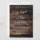 Voici une invitation saisissante pour votre événement après-réception de mariage. Le fond est d'abord recouvert d'une photo représentant du bois brun foncé rugueusement taillé avec des lignes horizontales. Le haut des deux côtés est drapé dans un graphique qui suggère des guirlandes de lumières brillantes scintillantes. Vos détails apparaissent en blanc. Pour compléter la police sans empattement utilisée pour votre texte modifiable, j'ai ajouté les mots clés et accents "nous nous sommes mariés en petit comité", "et", ainsi que "amour" au verso, en utilisant une jolie police de calligraphie moderne.