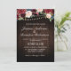 L'invitation de mariage bohème florale en bois de campagne rustique comporte des graphiques de fleurs à l'aquarelle peints à la main / roses dans des tons riches de bordeaux, de rouge Marsala, de bleu marine et de rose / pêche et une police de style lettrage manuscrit charmant avec un fond de guirlande lumineuse. Veuillez me contacter pour toute aide à la personnalisation ou si vous avez besoin d'un autre produit avec ce design.