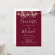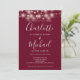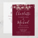 Avec de jolies guirlandes lumineuses et des noms de style signature, cette élégante invitation de mariage bordeaux peut être personnalisée avec toutes vos informations spéciales de jour de mariage au recto, les détails de votre site web de mariage, et votre code QR au verso. Conçu par Thisisnotme©